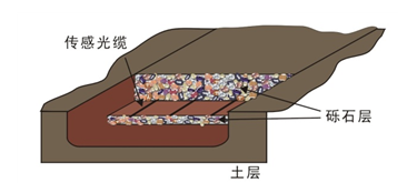 Surface, every 50cm with steel wire clip. After laying the sensing optical cable, cover it with a layer of coarse sand with a thickness of 10cm, and finally evenly cover its surface with a layer of 1cm surface medium (fine sand or loose and dry soil).